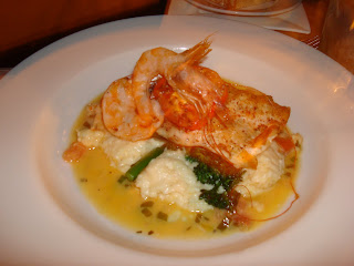 Obviously it was some kind of fish with a couple of shrimp on some grits with broccolini. Sorry, not a beautiful description, but just know that it was damn good.