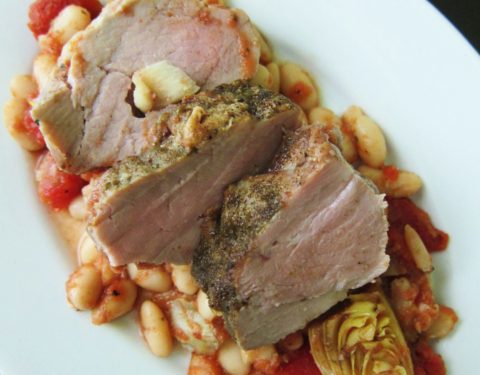 Sage Roasted Pork Tenderloin with Beans & Artichokes
